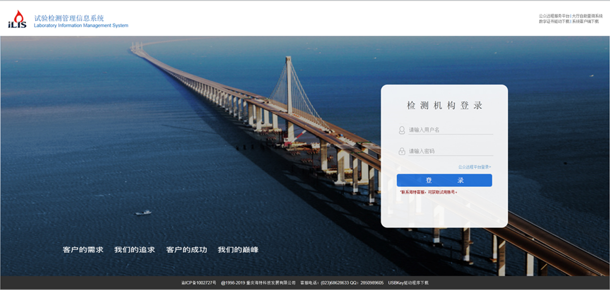系統(tǒng)所有功能均基于Internet互聯(lián)網(wǎng)運(yùn)行,軟件使用不受時(shí)間和地域的限制,現(xiàn)場(chǎng)檢測(cè)可即時(shí)錄入檢測(cè)數(shù)據(jù),出差也可簽發(fā)檢測(cè)報(bào)告,只需要輸入一個(gè)網(wǎng)址即可。得益于先天的架構(gòu)優(yōu)勢(shì),本系統(tǒng)具有良好的擴(kuò)展性,如工地試驗(yàn)室管理、駐外分室管理、現(xiàn)場(chǎng)試驗(yàn)檢測(cè)等均可實(shí)現(xiàn)在線分布式信息化無縫管理。
