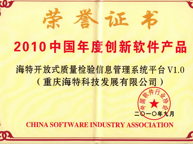 2010年9月3日,“2010中國(guó)軟件產(chǎn)業(yè)發(fā)展暨企業(yè)創(chuàng)新高峰會(huì)”在南京金陵會(huì)議中心揚(yáng)子廳舉行。我公司“海特開放式質(zhì)量檢驗(yàn)信息管理系統(tǒng)平臺(tái)(TIS)V1.0”在此次會(huì)議上獲得了中國(guó)十大創(chuàng)新軟件產(chǎn)品的殊榮。