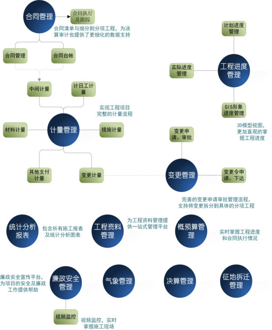 海特高等級公路多項目建設(shè)項目管理大數(shù)據(jù)云平臺是海特科技在交通工程建設(shè)信息化領(lǐng)域建設(shè)多年的開發(fā)成果,它沉淀了海特作為交通工程建設(shè)信息化供應(yīng)商多年來所積累的豐富經(jīng)驗,該平臺主要為項目業(yè)主及各層參與單位投資、建設(shè)、運(yùn)營、養(yǎng)護(hù)多個工程項目的復(fù)雜管理過程而定制,旨在建立一個現(xiàn)代化、務(wù)實、高效的信息化管理平臺,確保高質(zhì)量、低成本的完成項目業(yè)主及各層參與單位的管理工作。該平臺包括項投資管理、質(zhì)量管理、安全管理、文檔管理、進(jìn)度管理、辦公自動化六大功能模塊,并提供了基于BIM的綜合分析決策支持應(yīng)用模塊,能完成項目業(yè)主及各層參與單位對一個或多個公路工程項目項目建設(shè)全過程的管理,尤其對項目整個過程費(fèi)用、質(zhì)量、進(jìn)度等數(shù)據(jù)統(tǒng)計和分析。從而達(dá)到項目業(yè)主及各層參與單位對各項目投資、建設(shè)、運(yùn)營的有效管理和控制的目標(biāo)。